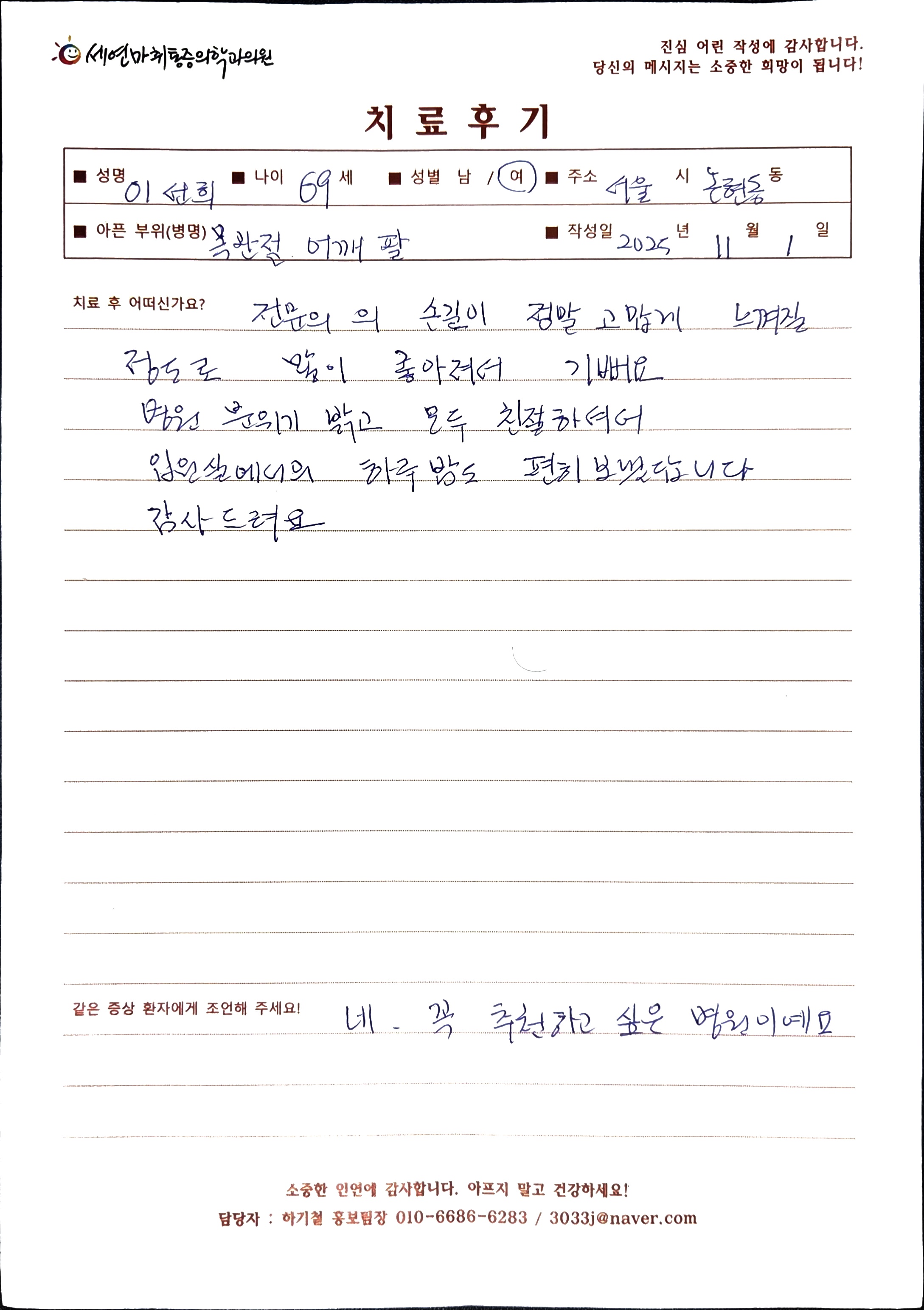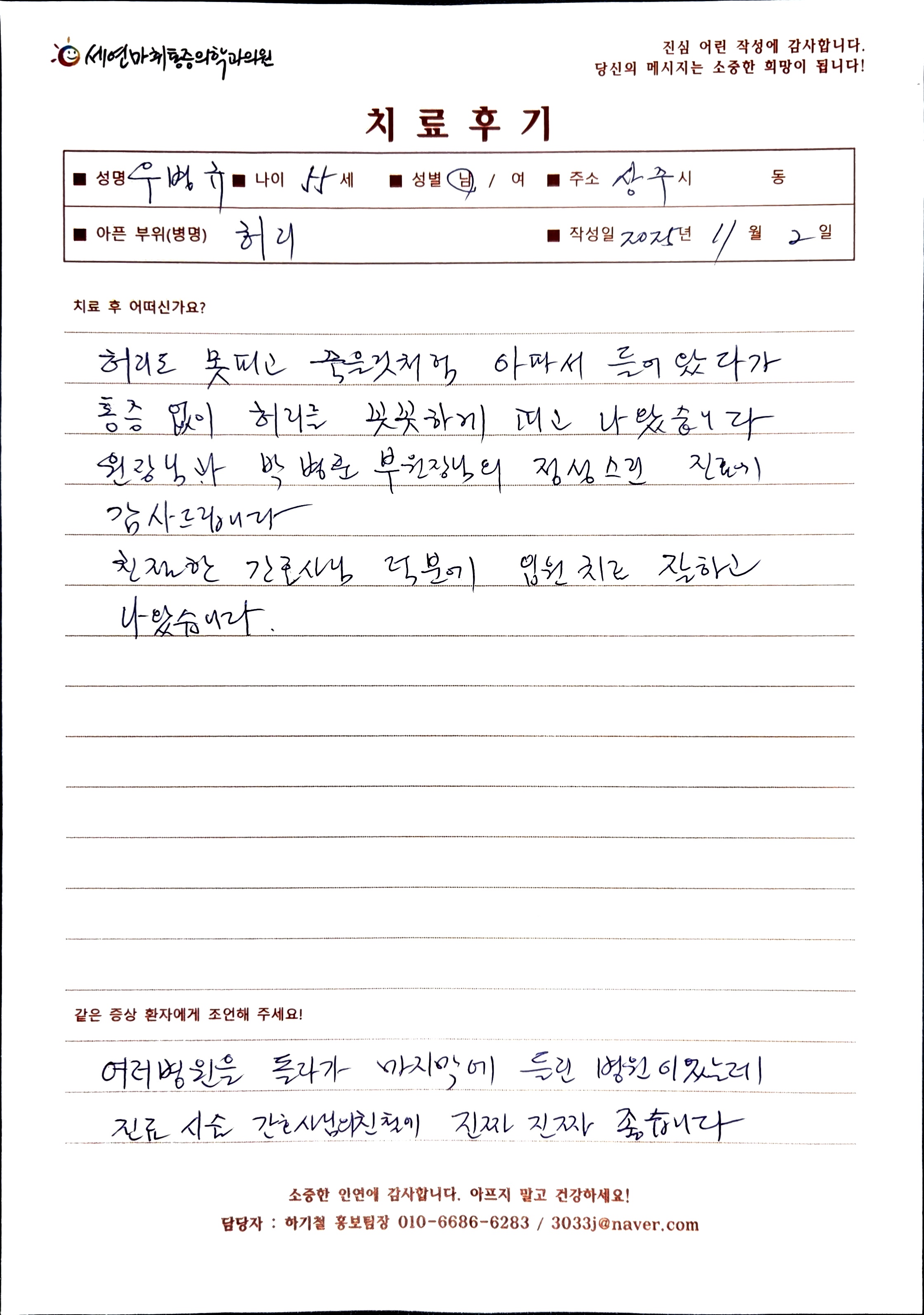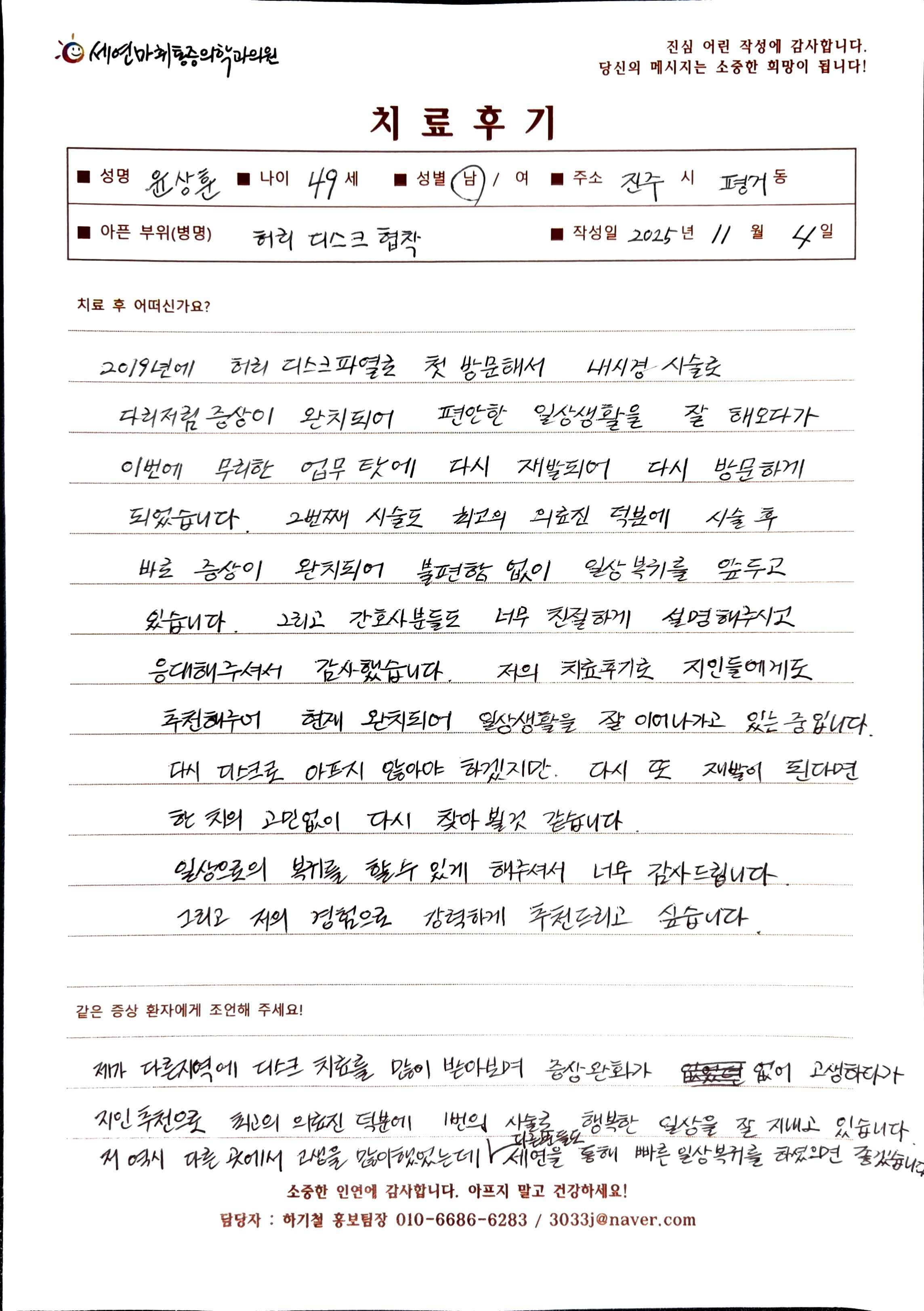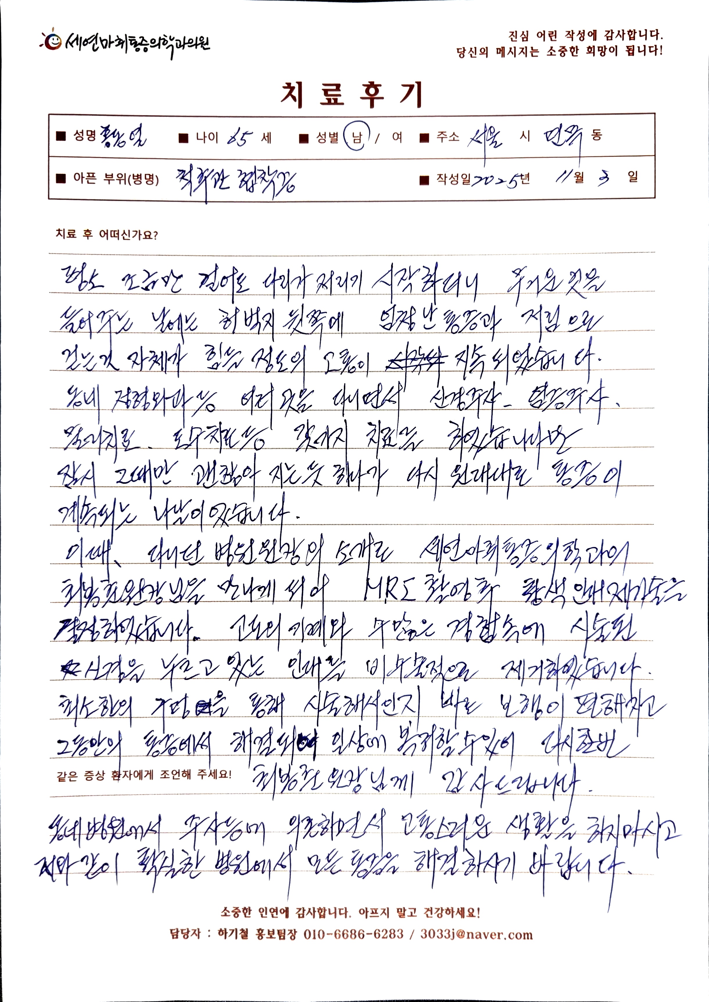 생생 치료후기 4 페이지 | 신사역 강남정형외과 | 세연마취통증의학과