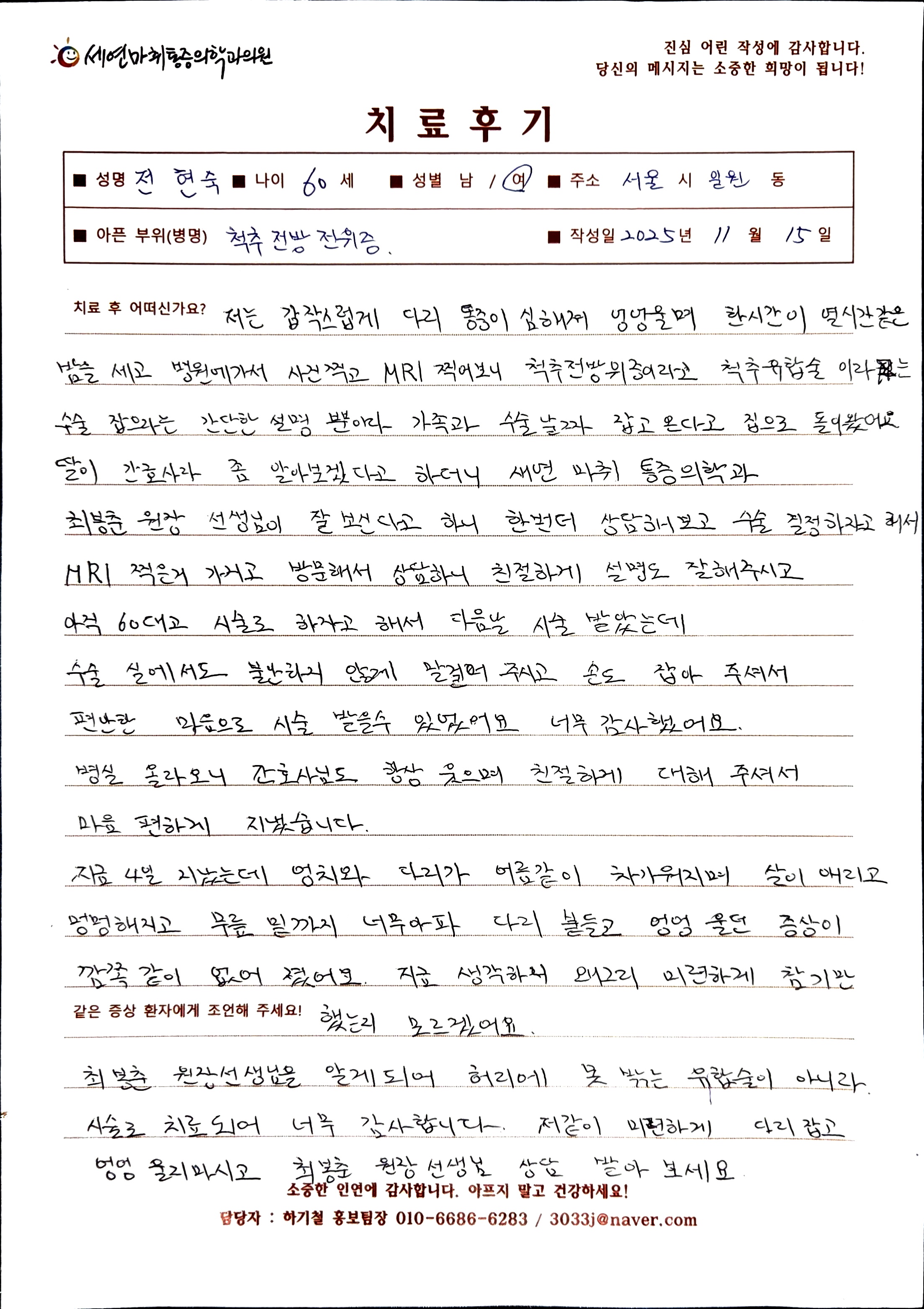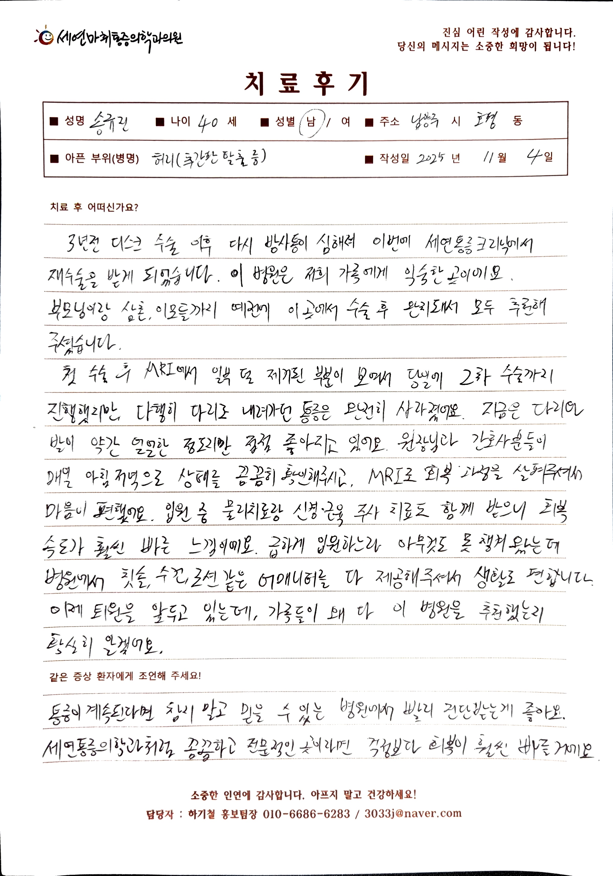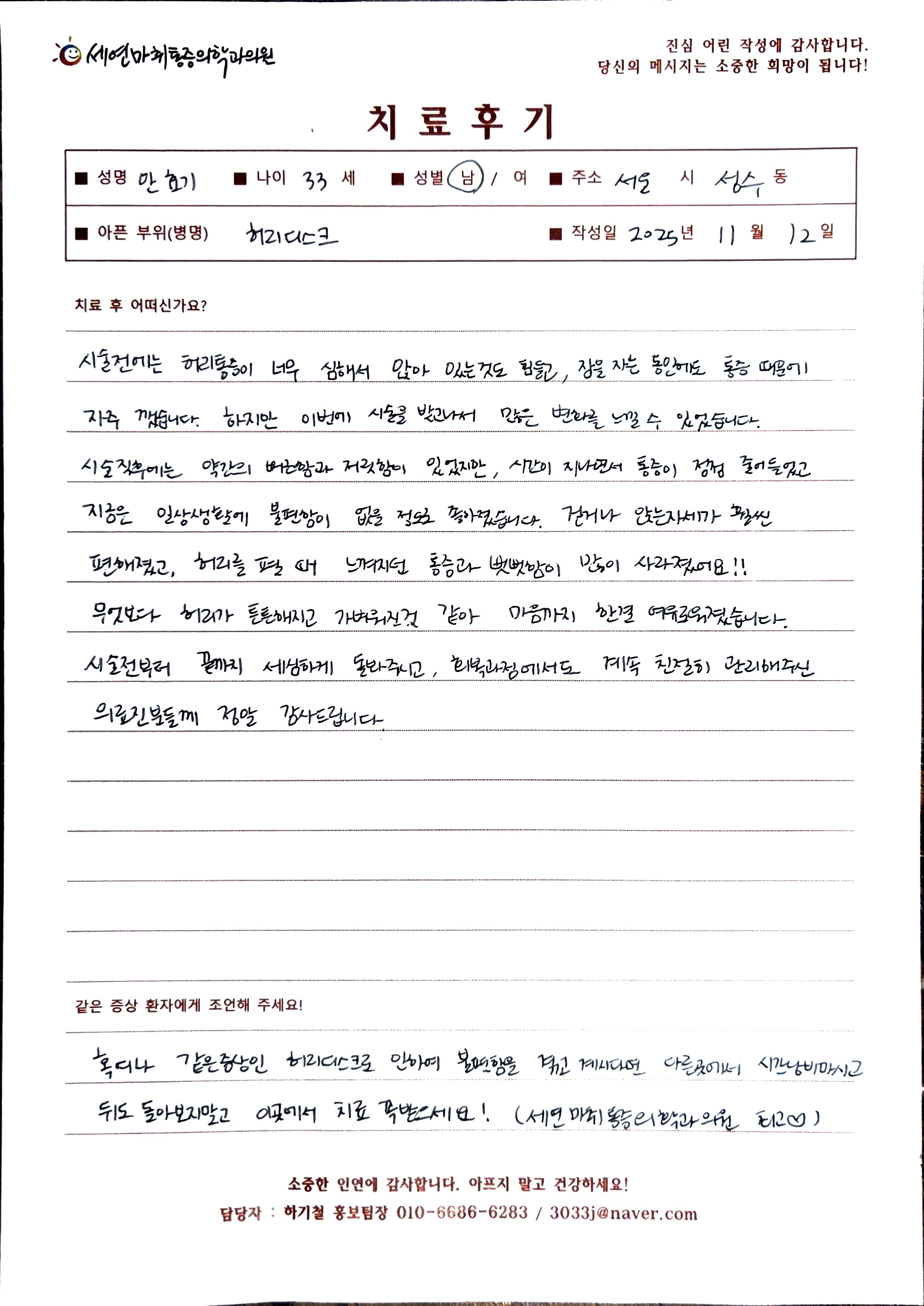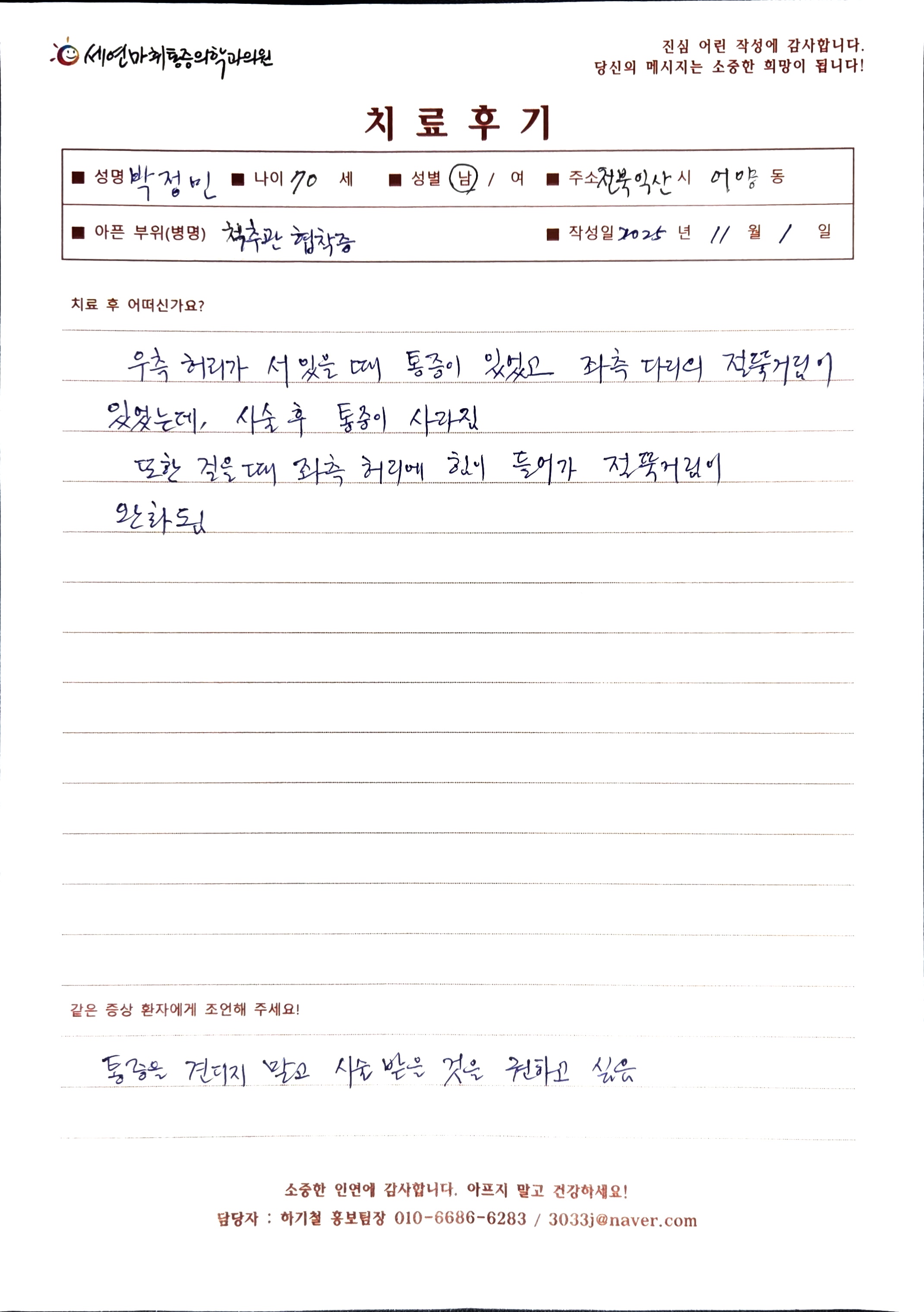 생생 치료후기 4 페이지 | 신사역 강남정형외과 | 세연마취통증의학과